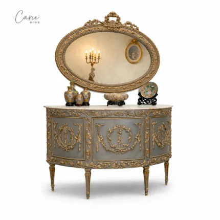 كونسول "لوفر" ملكي - خشب طبيعي محفور بالكامل مع مرآة جدارية فاخرة