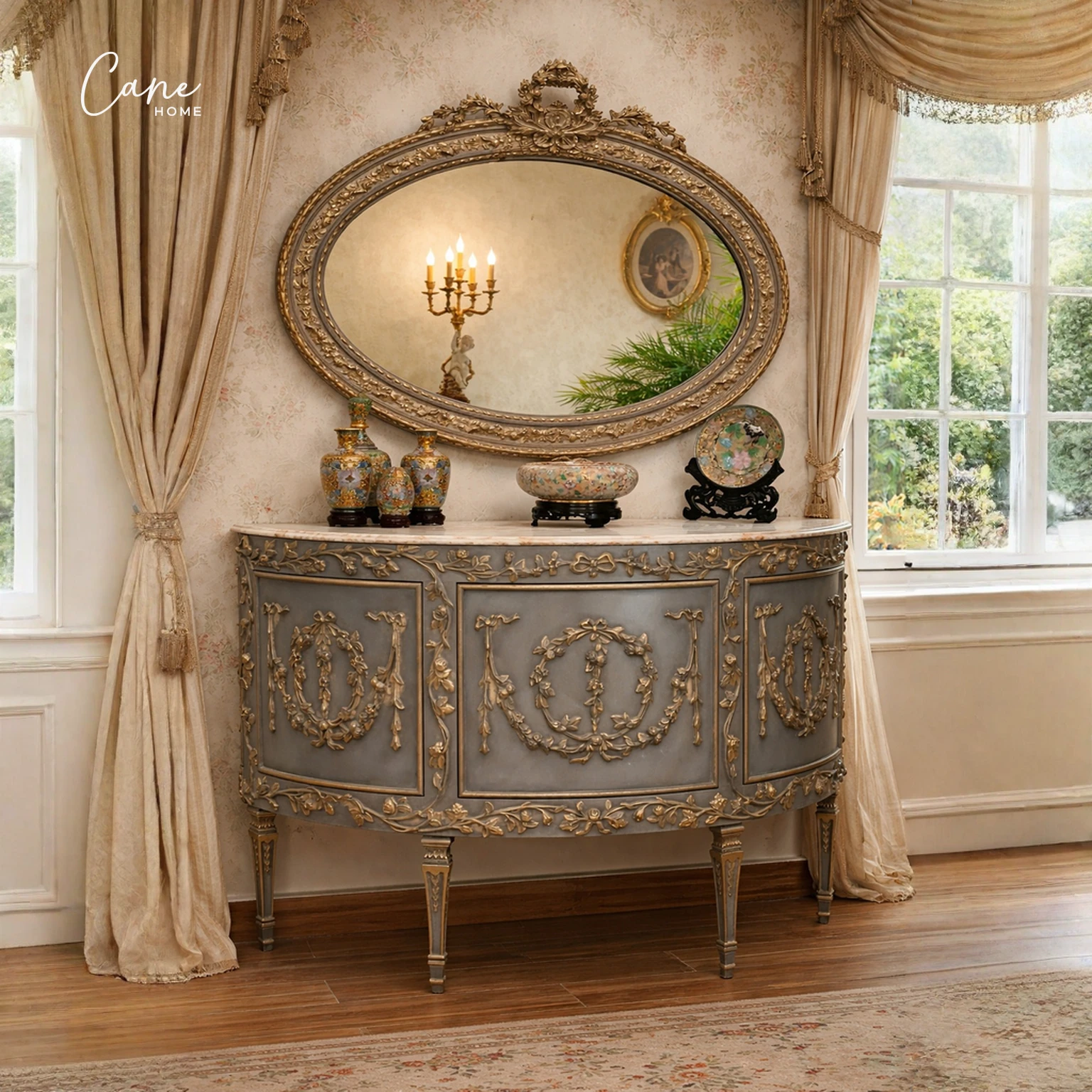 يعتبر اقتناء مدخل بيضاوي خشب زان من كاني هوم خطوة استثنائية لمن يبحث عن التأثيث الملكي الفاخر، حيث تدمج هذه القطعة بين الفن الإيطالي واللمسات الكلاسيكية العريقة.